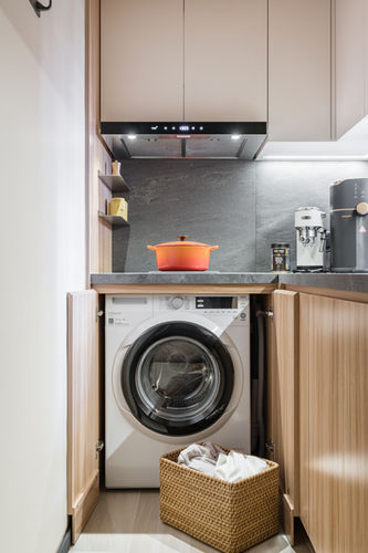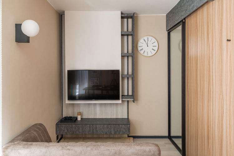 The theme of this project was the magnolia. This flower symbolizes patience, longevity, and perseverance, and can bring positive energy to your home. We were excited to work with this couple who have a little girl and two cats and needed our help to transform their small apartment into a cozy space. We blended a Scandinavian style with bold black stripes to create a sense of spaciousness and elegance that the couple, their child, and their cats can enjoy for years to come.